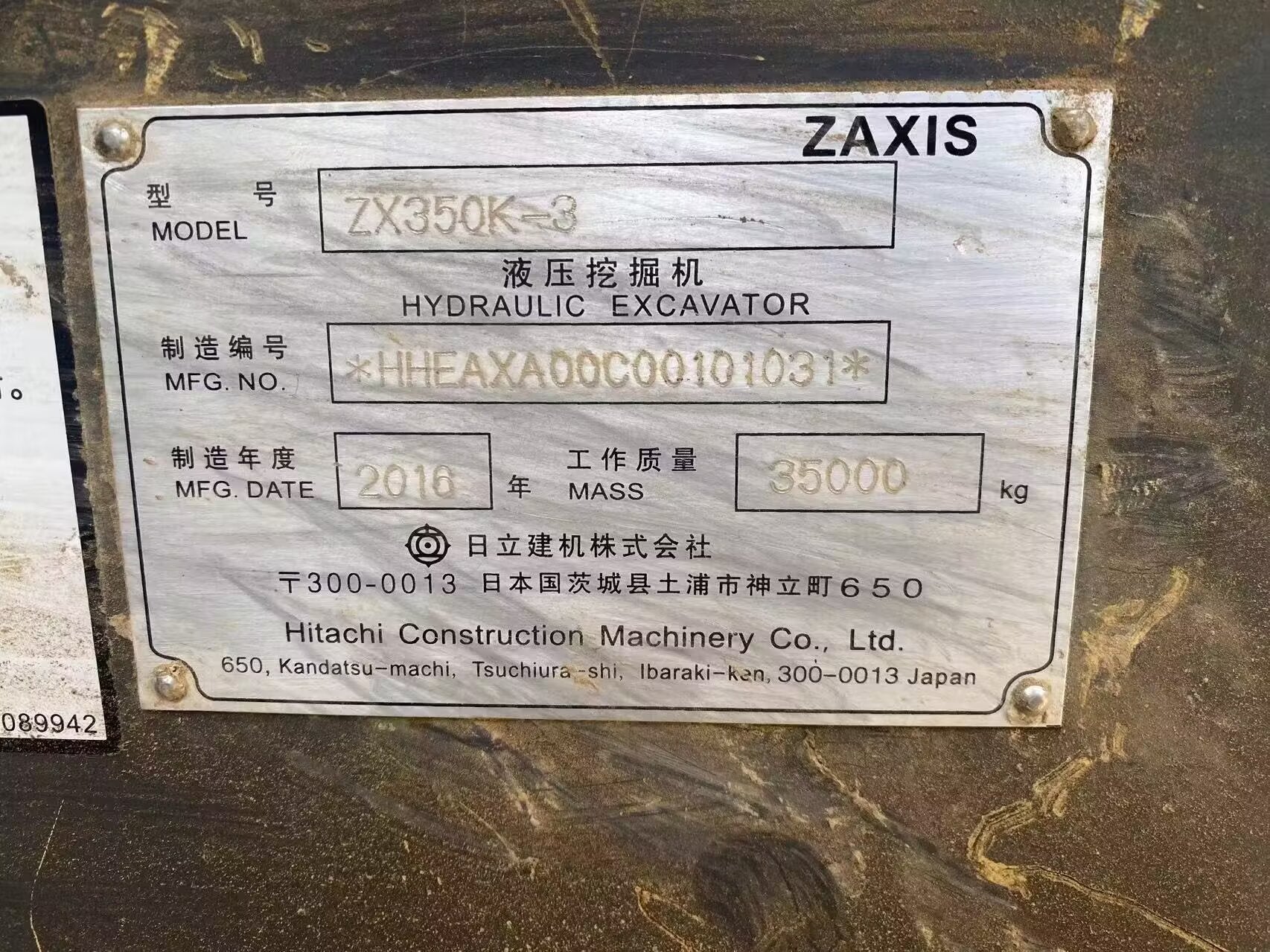 🚜 Hitachi ZX350LC-6 Hydraulic Excavator – Key Specifications