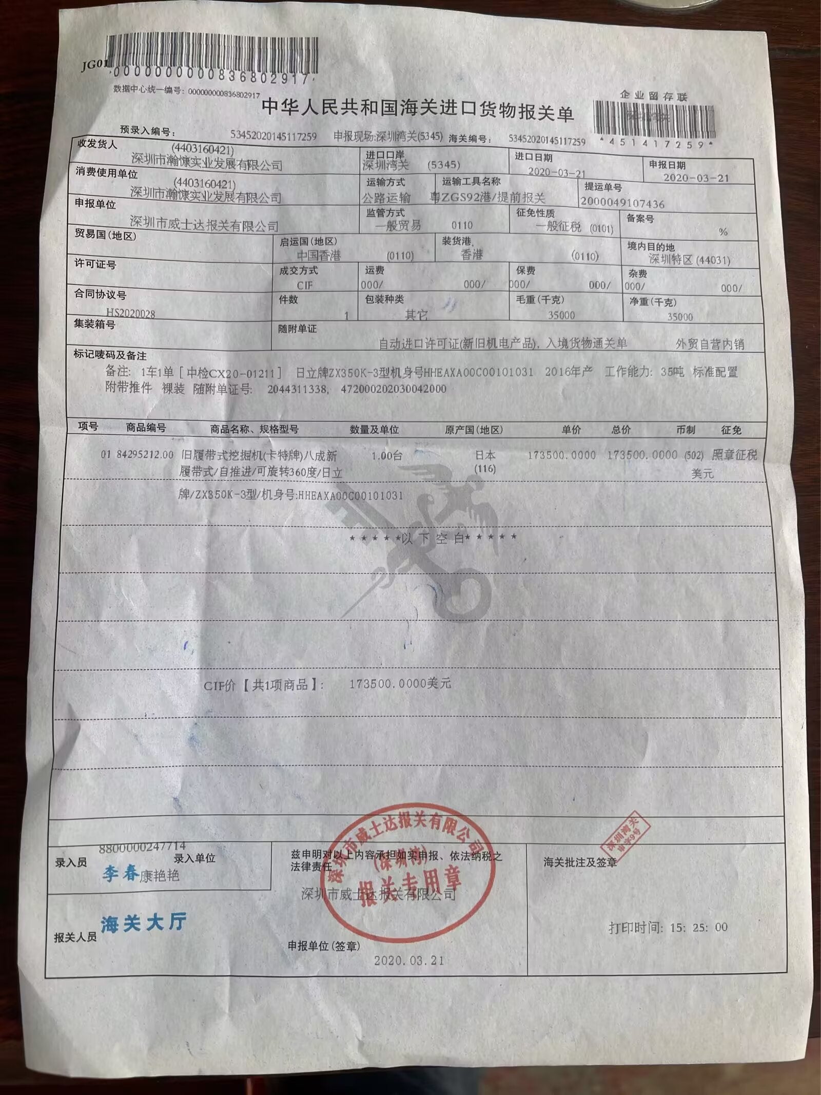 Hydraulic System Pressure: ~34,300 – 35,000 kPa